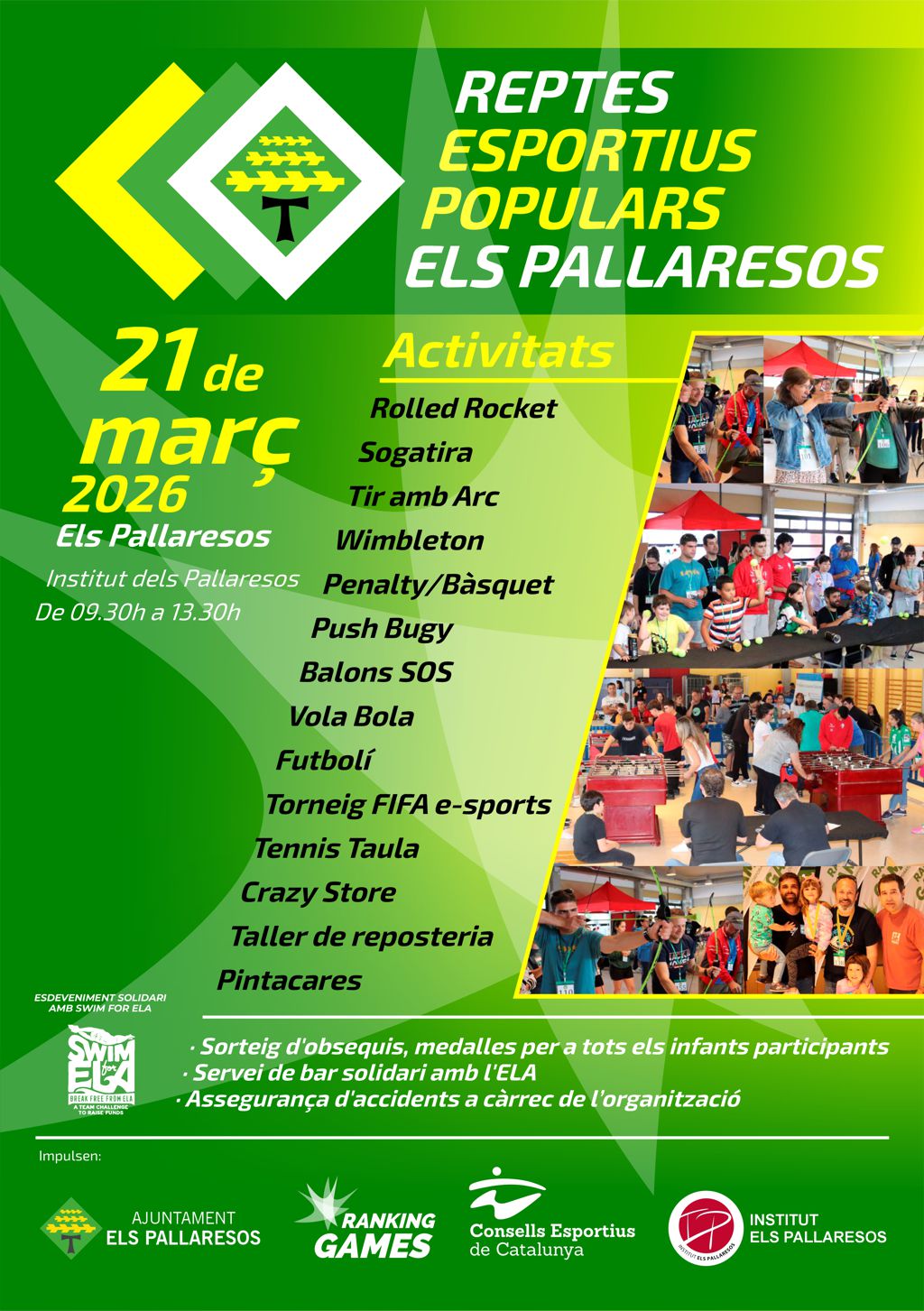 Els Pallaresos viurà la seva 4a edició dels Reptes Esportius el 21 de març de 2026. Un any més, l’Ajuntament dels Pallaresos ofereix als veïns i veïnes del municipi, de totes les edats, un parc temàtic d’activitat física, lúdica i popular per gaudir en família i ho farà en el format Ranking Games.